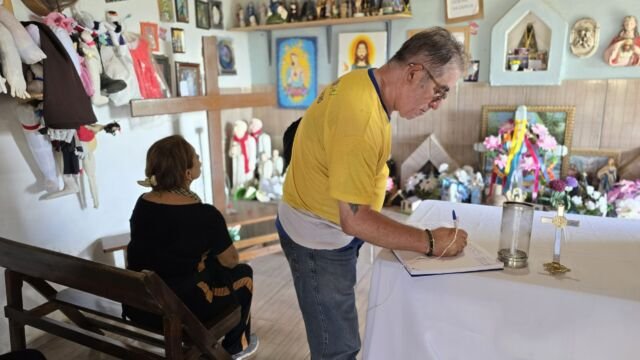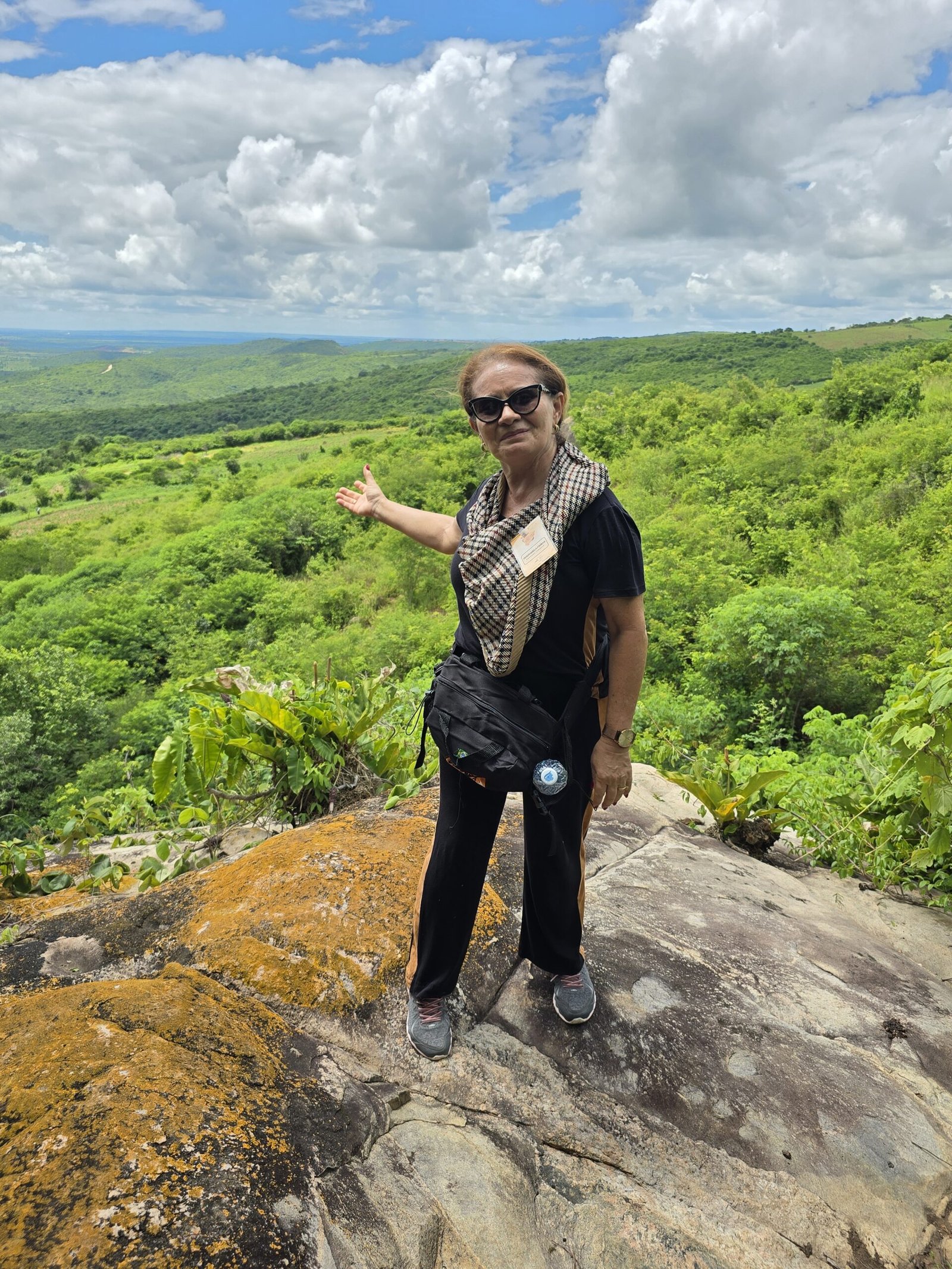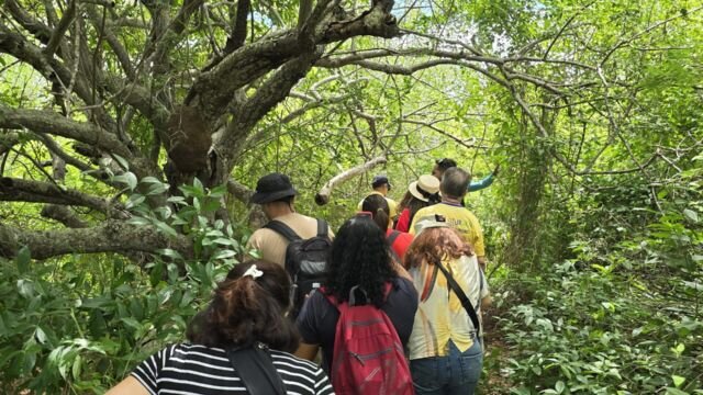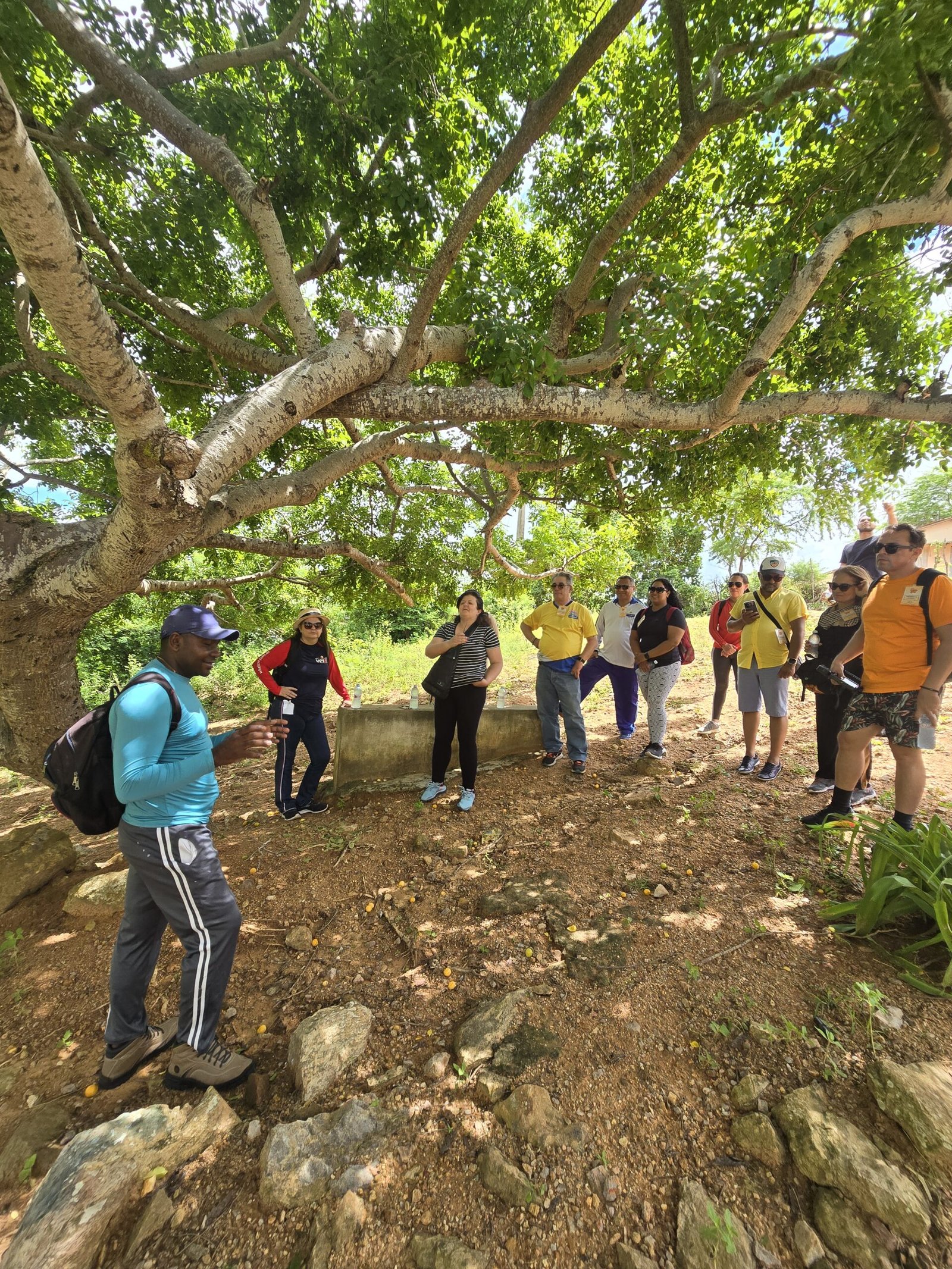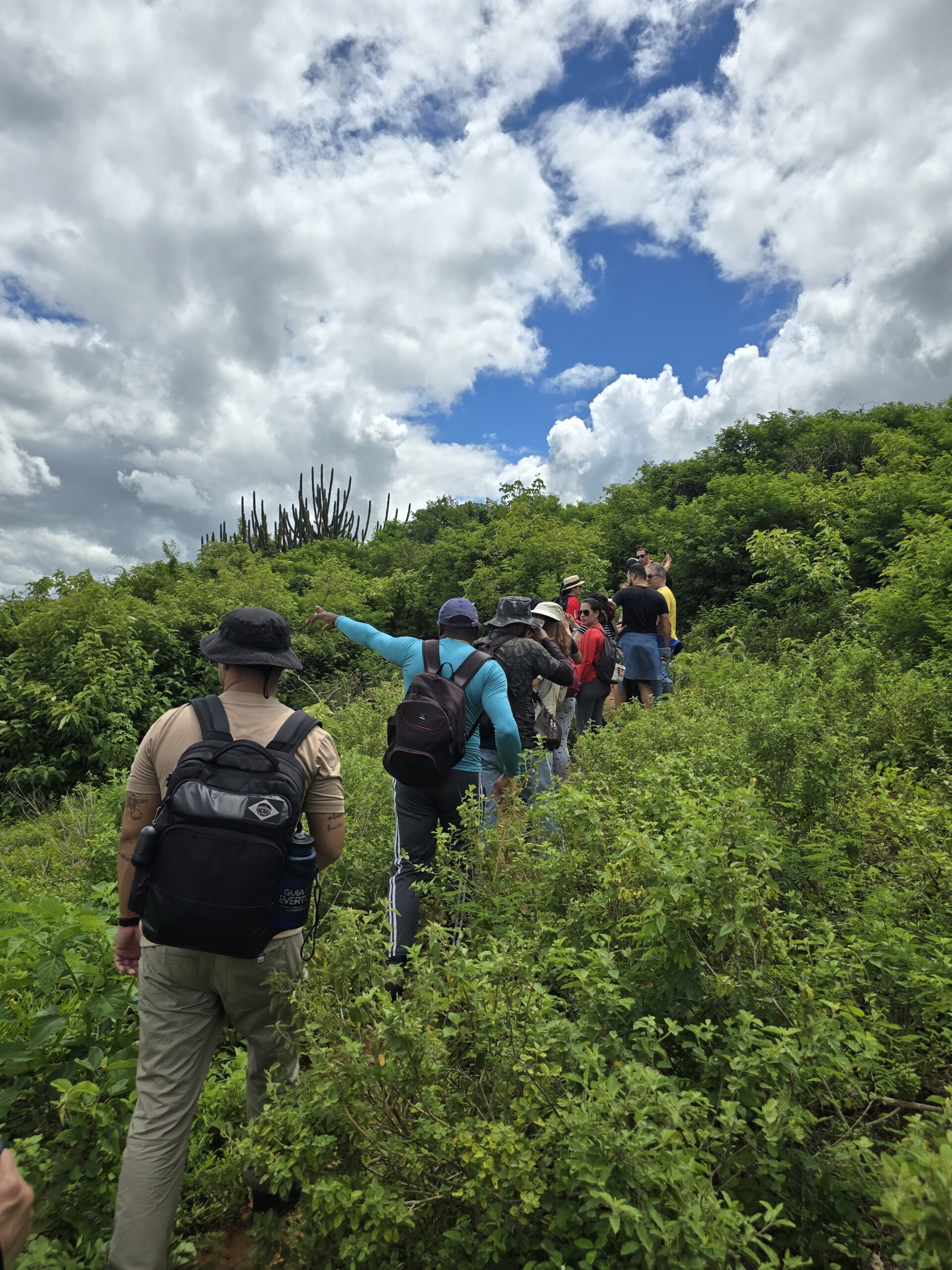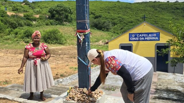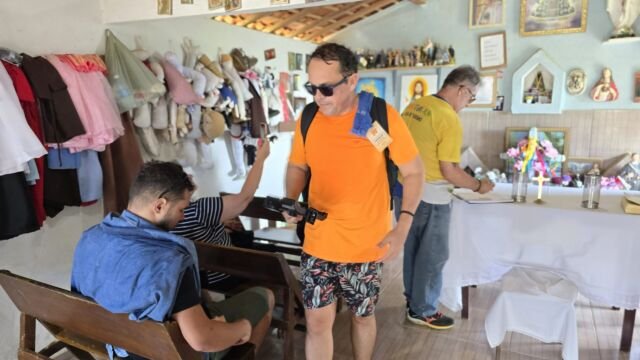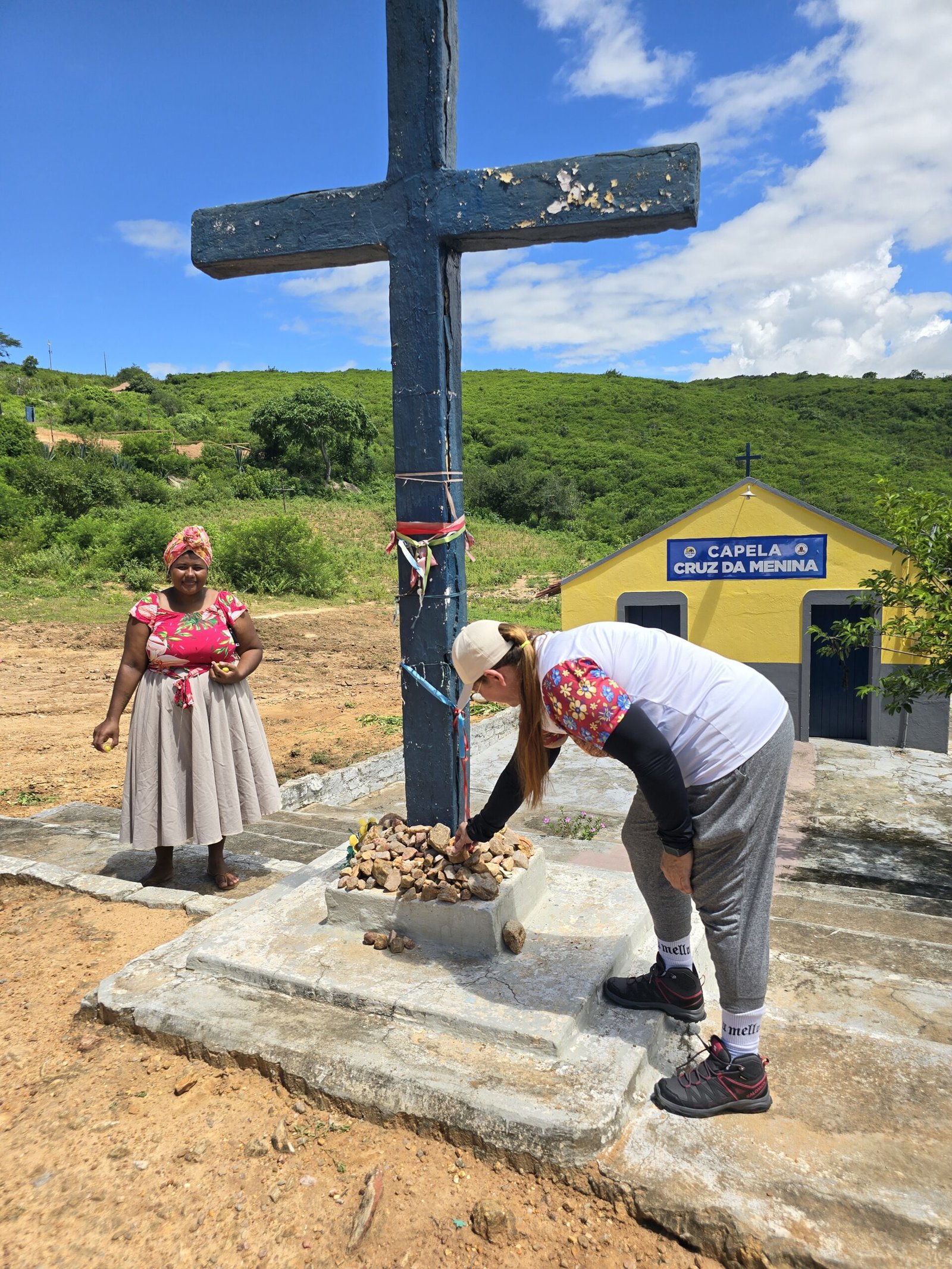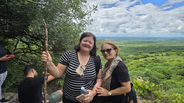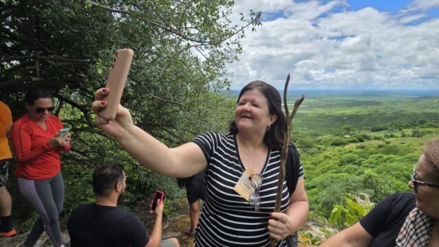 Em seguida o grupo partiu para a trilha do Gravatassu, com sua rica biodiversidade que oferece aos visitantes a oportunidade de apreciar a flora local da Caatinga e a vista da Serra e das cidades vizinhas. A trilha foi apenas o começo de uma jornada que se aprofundou na visita à Capela Cruz da Menina, onde os participantes foram imersos na história da menina Dulce, símbolo de fé e de milagres para a comunidade local.