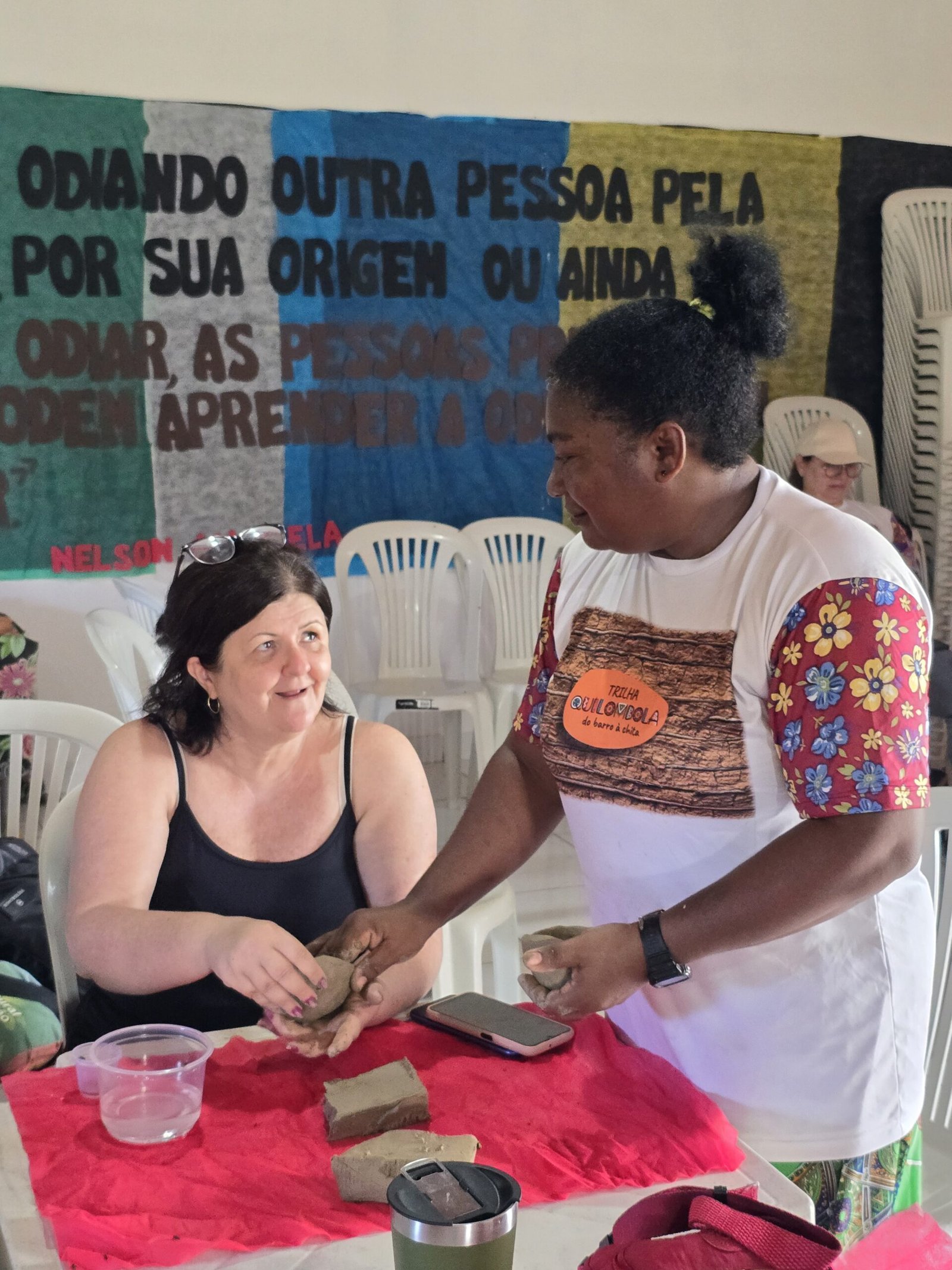 Além do aspecto cultural e espiritual, o famtour proporcionou atividades interativas como uma oficina de argila com as louceiras quilombolas, momento de relaxamento e de muita criatividade. No local, o grupo também teve a oportunidade de aprender sobre diversos modelos de tranças e ainda participaram dos benzimentos realizados pela benzedeira quilombola.