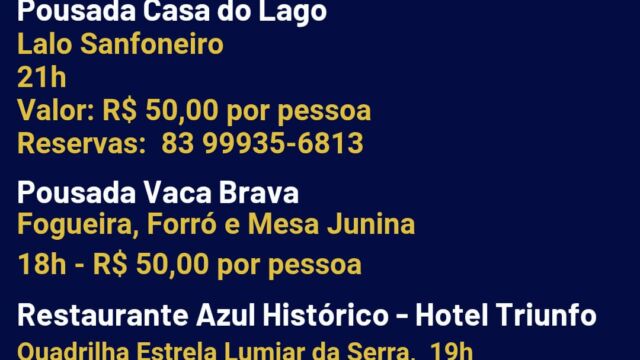 A agenda completa com as atrações pode ser conferida nas redes sociais da ATURA. A cidade convida moradores e turistas a subir a serra e aproveitar a combinação perfeita de forró, frio e tradição em um dos destinos mais charmosos da Paraíba.