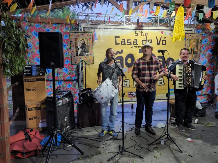 O evento começou no fim da tarde com um ritual religioso muito comum no campo, no Resturante Rural Vó Maria. Foi fincada a bandeira de São João e o Cruzeiro.
