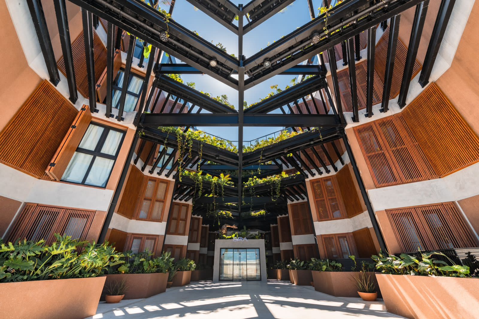 Para criar o BA’RA, foram utilizados elementos de forma inovadora, criando ambientes naturais que contribuem para o bem estar do hóspede. O acesso do hotel se dá por meio de um underground – ambiente que foge dos padrões em meio as duas partes do hotel – na área central da edificação reunido por vigas metálicas em forma de jardineiras com escadas e lounges nas laterais, promovendo a sensação de acolhimento e dando boas-vindas ao hóspede no seu trajeto pela recepção
