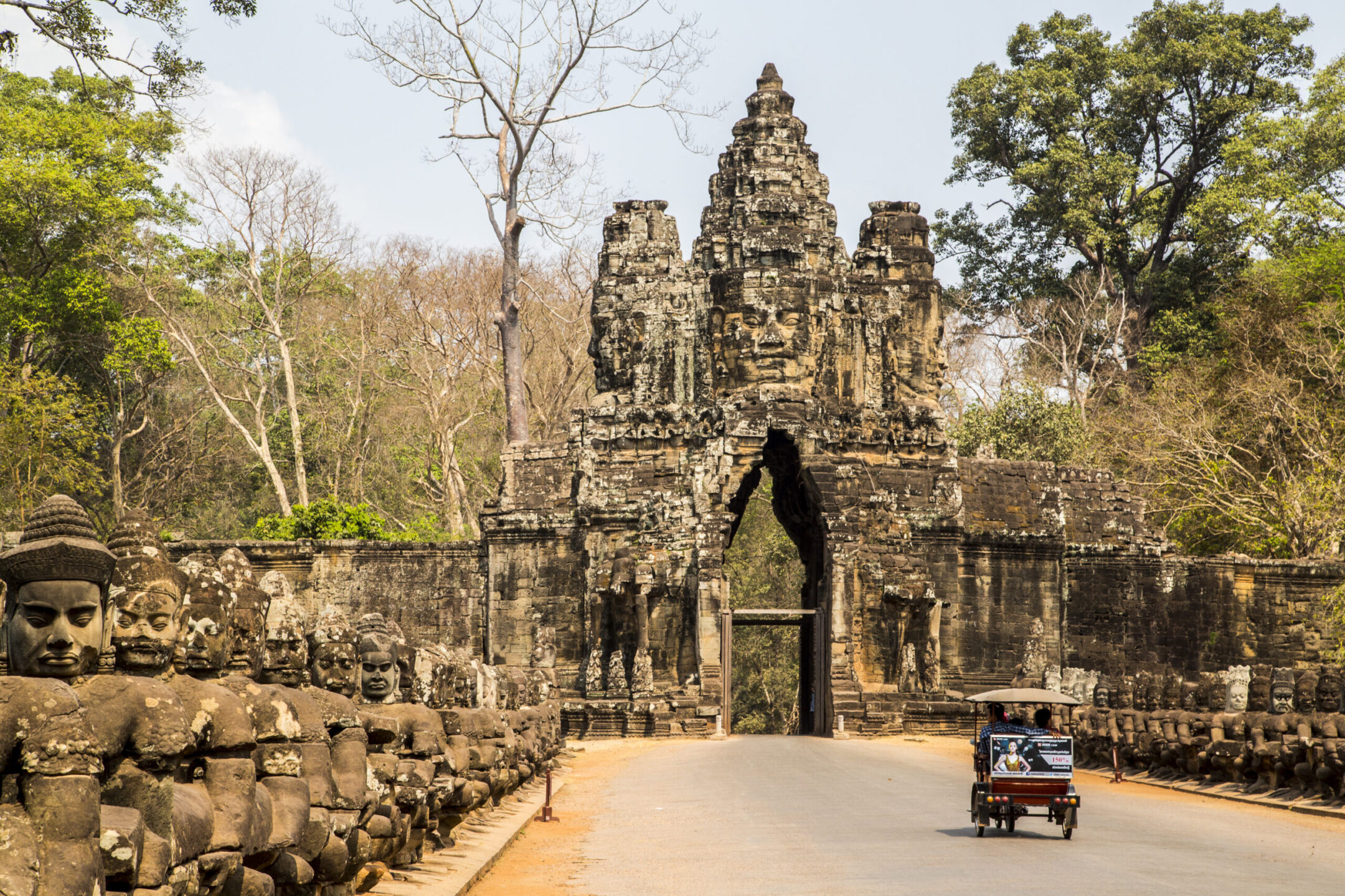 Para quem deseja fazer um passeio de balão sobre ruínas antigas, o templo mais emblemático do Camboja, Angkor Wat, é o local perfeito. Cobrindo mais de 200 hectares, esse Patrimônio Mundial da UNESCO é o maior monumento religioso do mundo e uma das principais atrações do sudeste da Ásia. Um símbolo nacional, o complexo do templo é rodeado por um vasto fosso e remonta ao início do século XII, permanecendo bem preservado até hoje. Conhecer Angkor Wat e a zona rural do Camboja com seus campos de arroz e aldeias de cima, seja ao nascer ou ao pôr do sol, é uma atração imperdível. De volta ao solo, é possível embarcar em um passeio de um dia pelos Templos de Angkor, para explorar diferentes santuários, do Angkor Wat ao Terraço dos Elefantes. Além de ser a porta de entrada para esses templos, Siem Reap está repleta de hotéis modernos, restaurantes de classe mundial e spas.