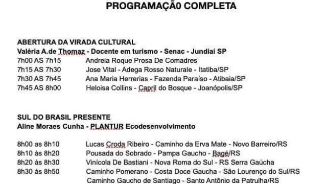 Neste domingo, (27) de setembro, dia em que se comemora o Dia Mundial do Turismo, encabeçada pelo Instituto Brasil Rural, encabeçada pela sua presidente, Andreia Roque em parceria com os representantes de todas as regiões do Brasil, irmanados em celebrar e fortalecer o Turismo Rural no Brasil se uniram e criaram a “Virada Cultural do Turismo Rural”.