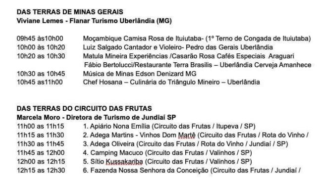 As apresentações do Sul, Sudeste, Centro Oeste, Norte e Nordeste acontecerão entre 07h às19h. Serão 12 horas de muita música, gastronomia regional, atrativos locais, depoimentos e sinergia.