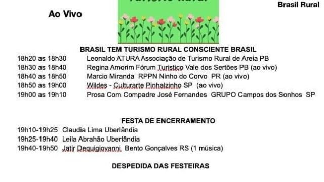 Facebook: https://www.facebook.com/confrariaruralturismoedesenvolviemnto/live/