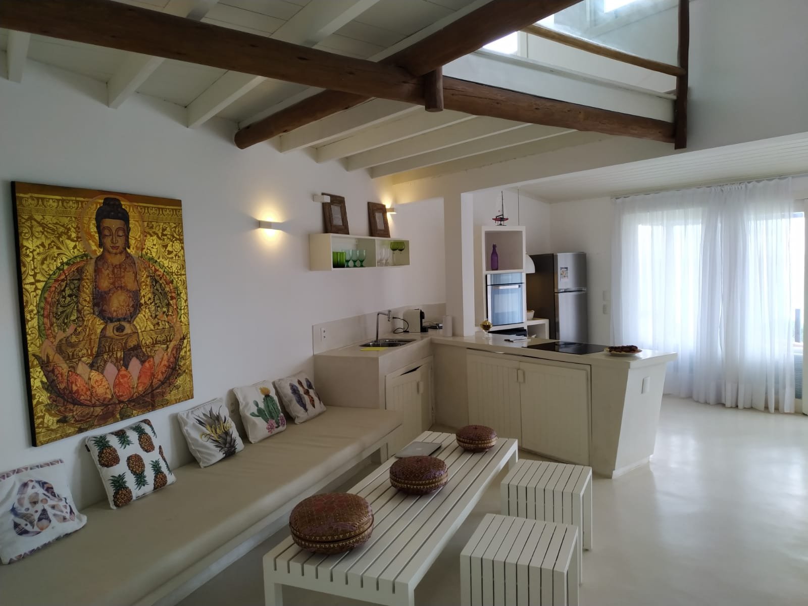 O ambiente é totalmente refrigerado, com pé direito alto e um mezanino encantador, que oferece uma vista deslumbrante do Oceano Atlântico, onde você poderá contemplar o nascer do sol e da lua. A varanda é um espaço perfeito para desfrutar de refeições ao ar livre, com mesa de jantar, sofá, poltrona, mesa de centro e até mesmo uma rede para momentos de relaxamento absoluto.