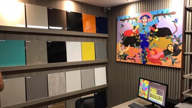 O artista plástico paraibano e Mestre da arte Naif, Clóvis Júnior esteve presente ao evento, assim como a sua arte, que compõem um dos ambientes do showroom, da Casa Brasileira.