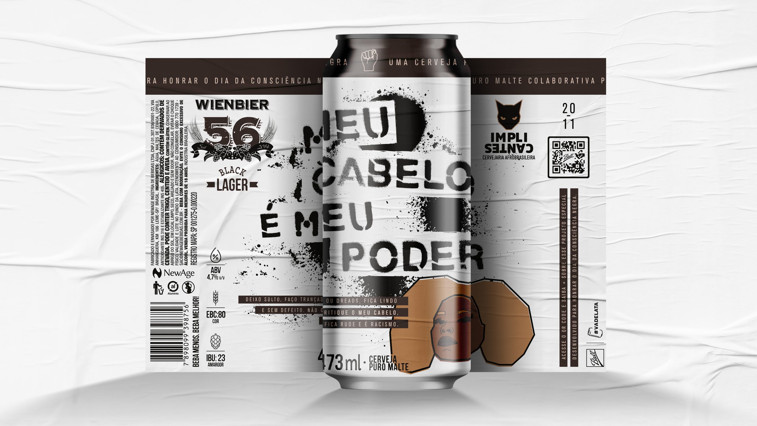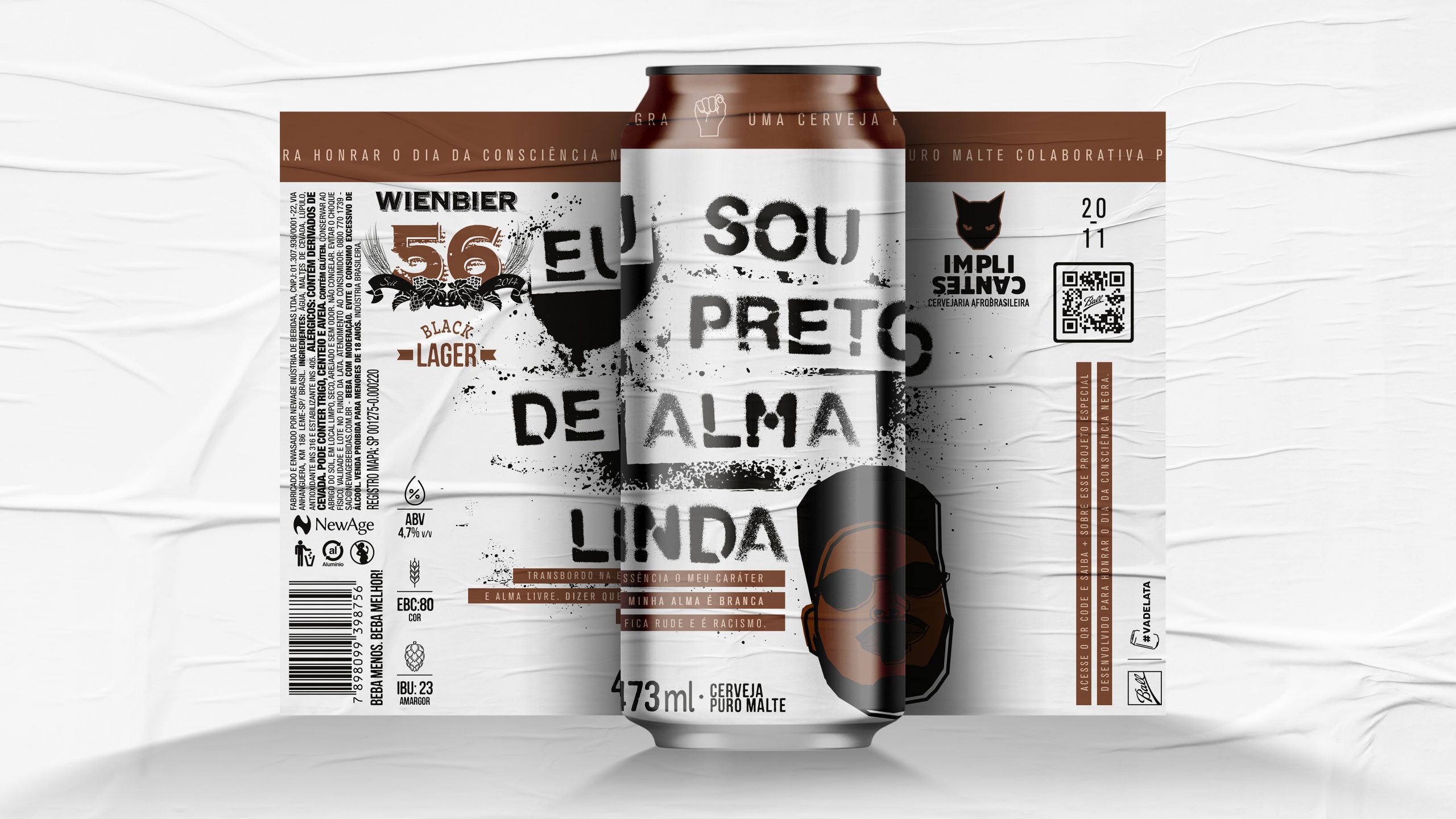 “Minha cor não é pecado!”: Essa é a frase que estampa um dos cinco rótulos da edição limitada da Cerveja Wienbier 56 Black Lager Puro Malte, da NewAge. A receita comemorativa honra o Dia da Consciência Negra, e é de responsabilidade do Mestre Cervejeiro Paulo Silva, que transforma a tradicional cerveja preta da marca em Puro Malte. O design do rótulo foi desenvolvido pela IMPLICANTES, a primeira cervejaria negra do país, e as latas para envase de bebidas são da Ball Corporation, líder mundial em embalagens sustentáveis de alumínio.