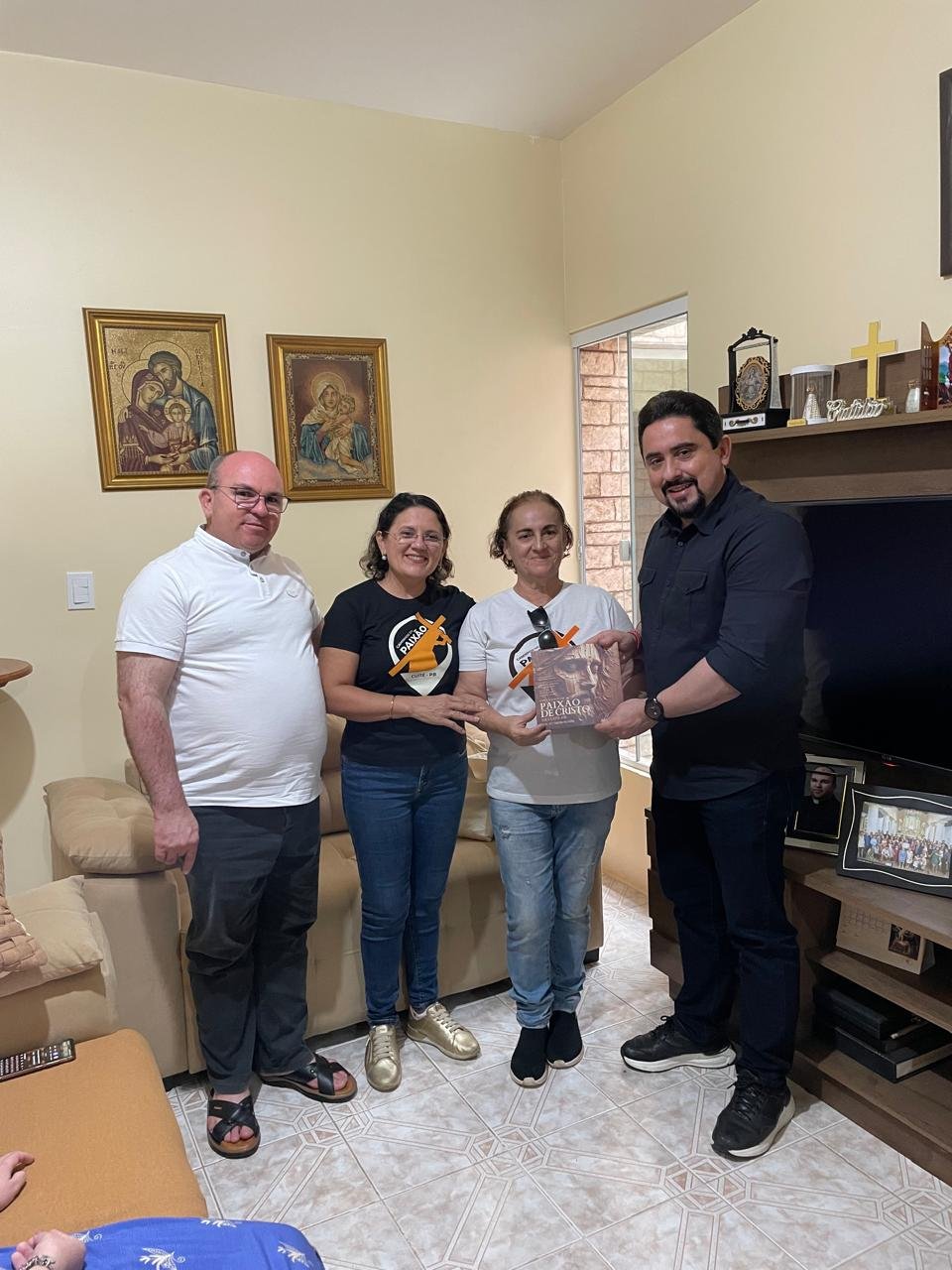 Durante o percurso, exemplares do livro sobre a história do Espetáculo da Paixão de Cristo e do cordel “Cuité é uma cidade de história, Turismo e Cultura” foram entregues, fortalecendo a identidade literária e popular da cidade.