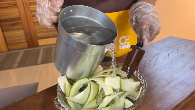 - Coloque as lâminas em água quente por 20 minutos para amolecer.