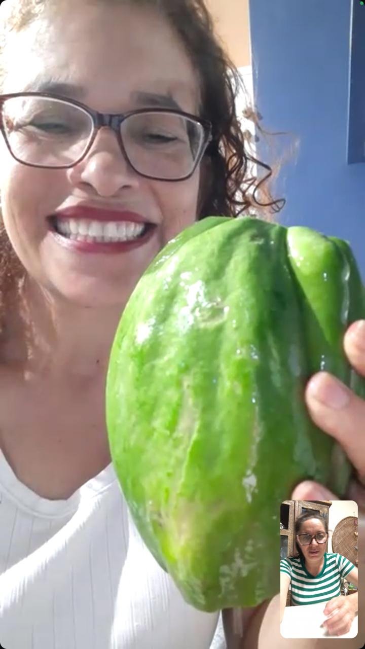 “Foi uma surpresa ver o mamão nascer no vaso e crescer tanto. A fruta me inspirou a criar algo especial, que resgatasse os sabores da minha infância e trouxesse alegria para as pessoas”, conta Marisa Romão.