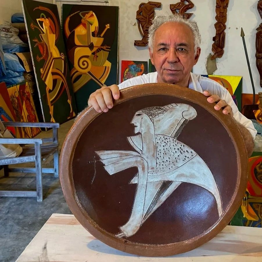 Sobre o artista – Considerado um dos ceramistas mais importantes do país, Miguel dos Santos nasceu em Caruaru (PE) em 1944 mas, desde 1960, se mudou para João Pessoa, onde também mantém seu ateliê. Desde os quatro anos de idade, Miguel demonstrou interesse pelas artes plásticas, inspirado por visitas à Feira de Caruaru com seu avô. Lá, ele observava o trabalho do Mestre Vitalino, um artesão famoso por criar bonecos de barro que retratavam a cultura nordestina.