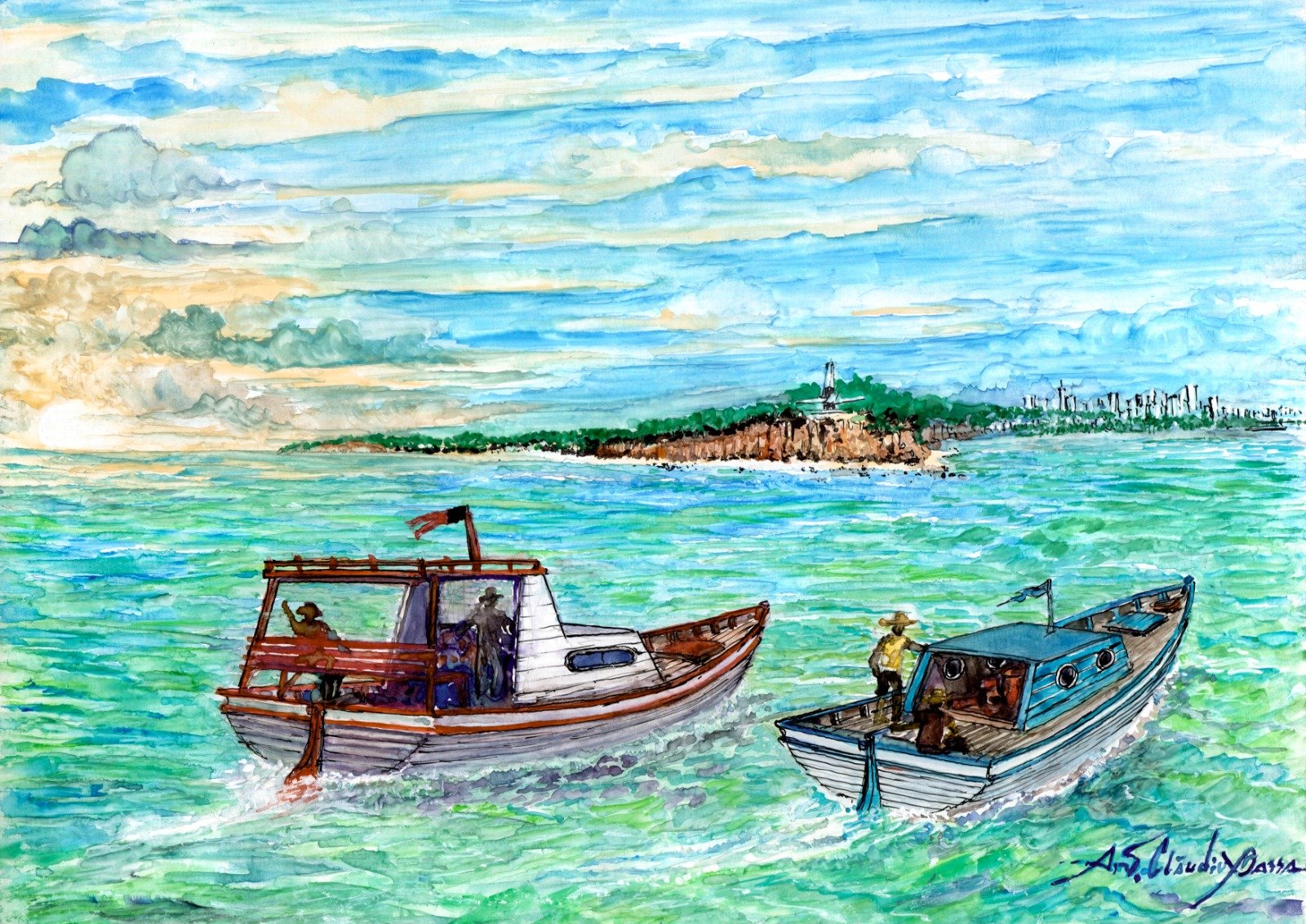 Aquarelas retratando cenários do verão na Capital paraibana serão expostas no restaurante Canoa dos Camarões a partir do dia (22) de janeiro