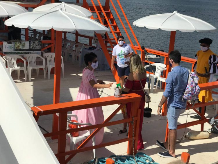 No “Vivenciando a História”, o turista já é surpreendido, logo na entrada do píer, com personagens da história da colonização vestidos a caráter dando as boas-vindas e indicando a embarcação.