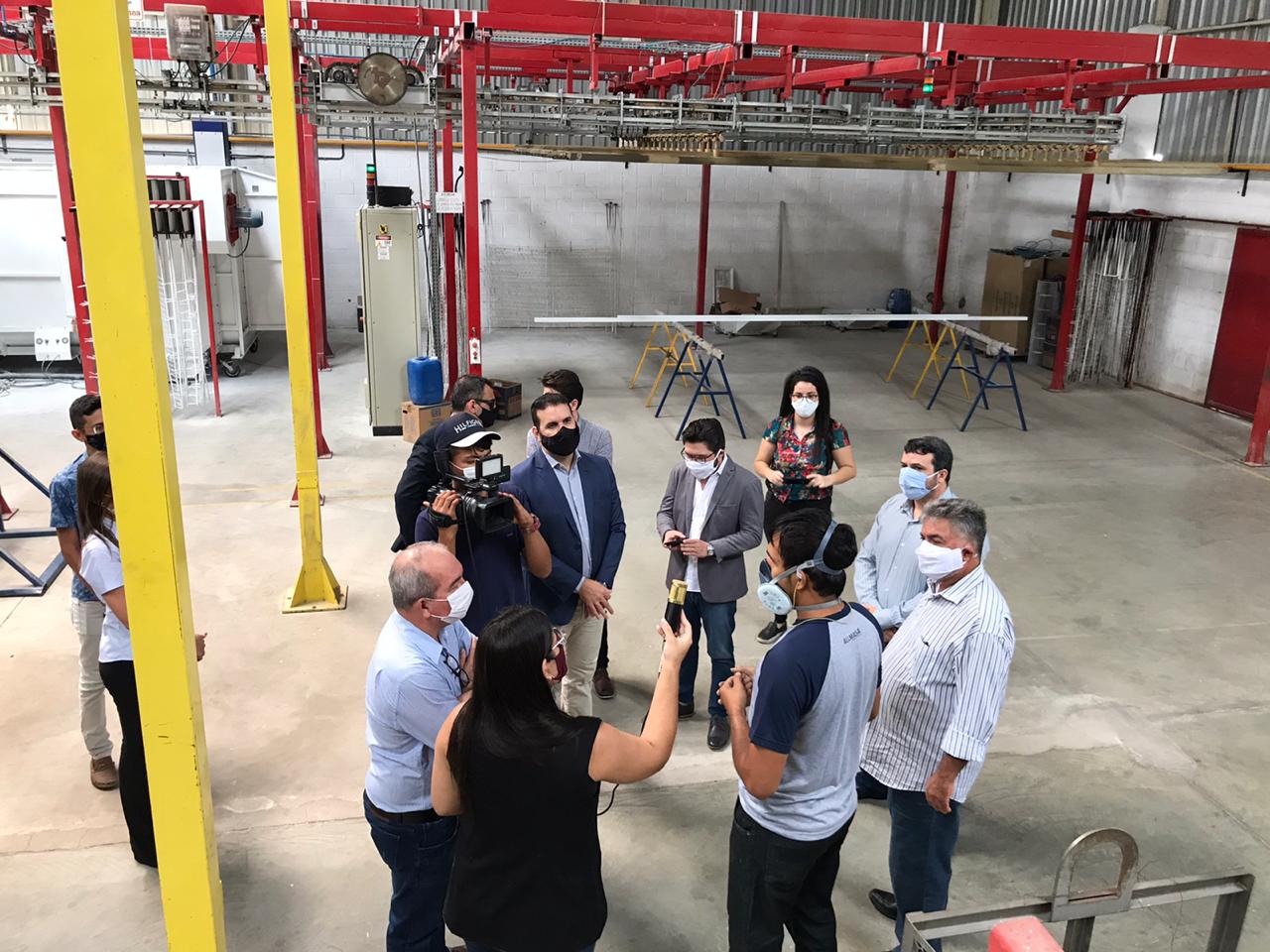 A primeira visita da comitiva foi conduzida pela Assistente Administrativo, Emília de Carvalho, que fez um tour pela unidade industrial da Alumasa, empresa de Santa Catarina que atua no ramo de fabricação de produtos metalúrgicos e plásticos, que se instalou recentemente no município. A empresa irá injetar cerca de R$ 15 milhões na economia do Estado, com produção estimada de 400 toneladas de alumínio por mês e gerar, diretamente, 150 empregos que poderão ser ampliados nos próximos dois anos. Após a visita, Emília convidou a comitiva para um café da manhã na sede da fábrica.