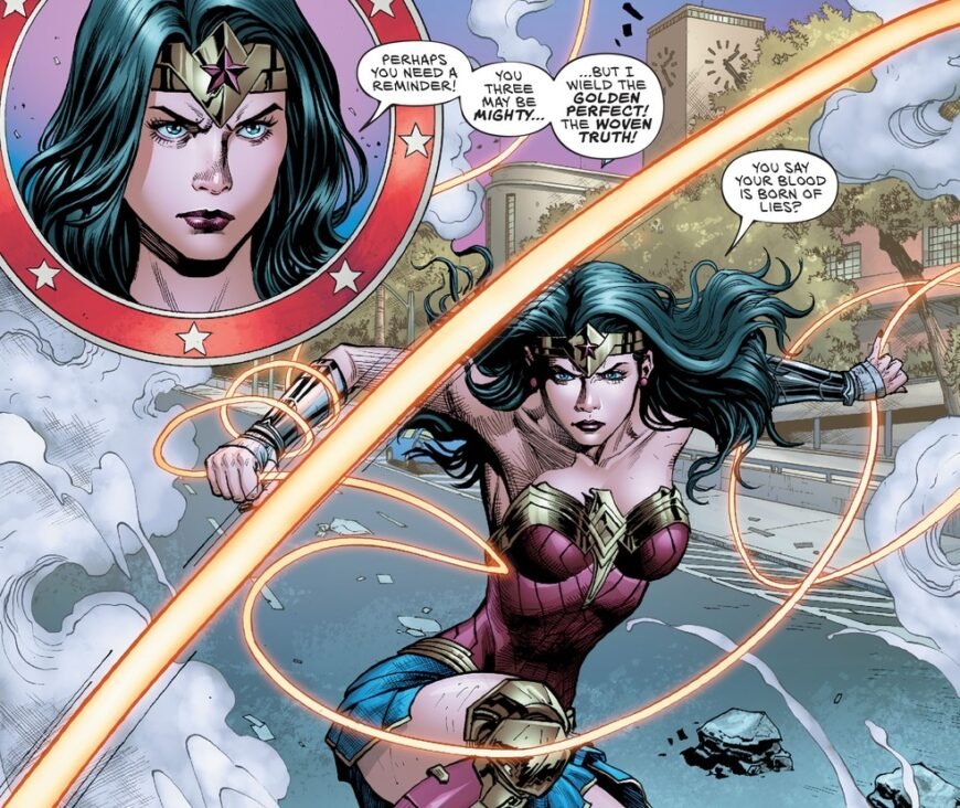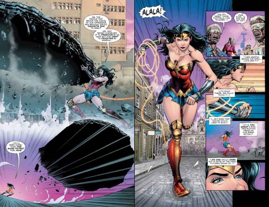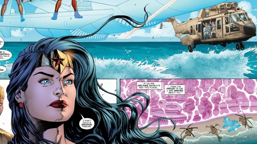 Diana Prince descobre que o feitiço é mais um trabalho das bruxas dos Dark Fates e parte para a cidade em uma missão de resgate. A luta vai moldar o futuro do Universo DC, segundo a descrição da revista no site da DC.