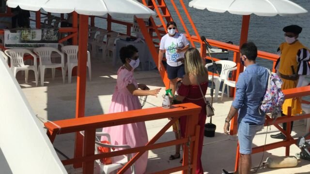 O passeio é realizado obedecendo todas as normas de segurança sanitária indicadas pela Organização Mundial de Saúde (OMS) e demais órgãos de vigilância sanitária do país como: medição da temperatura corporal na entrada para a embarcação, distanciamento, uso de máscaras e uso de álcool gel durante todo o percurso.