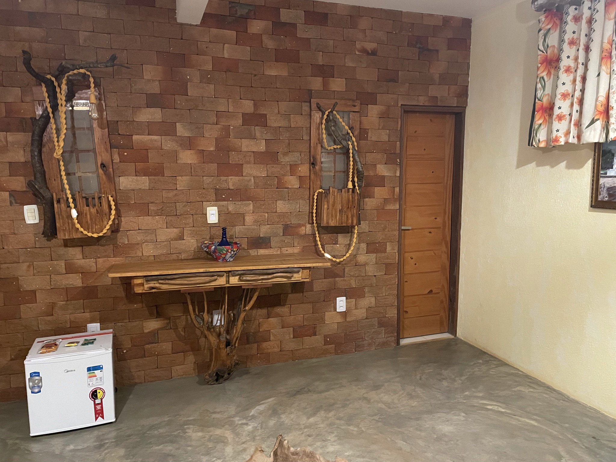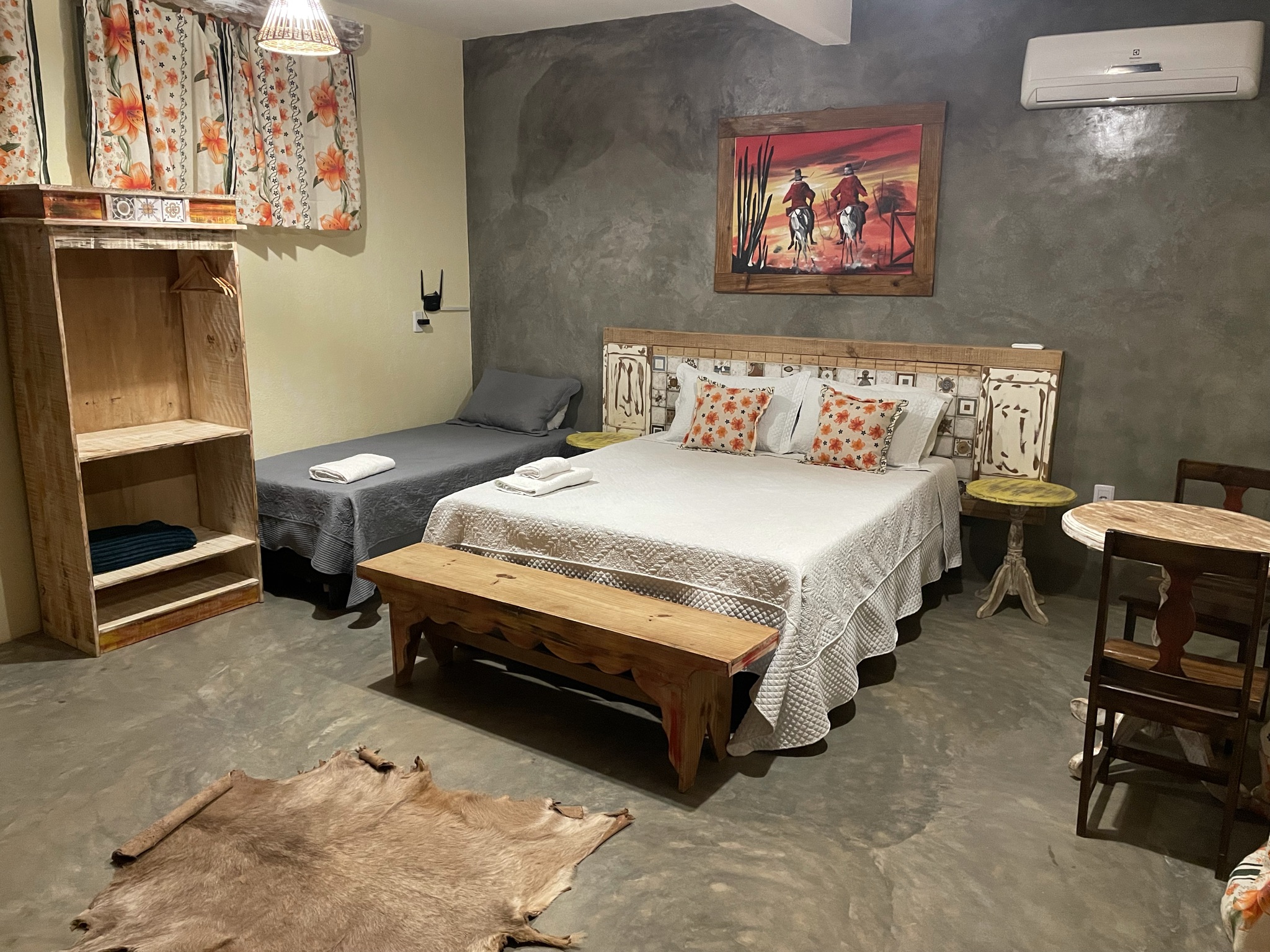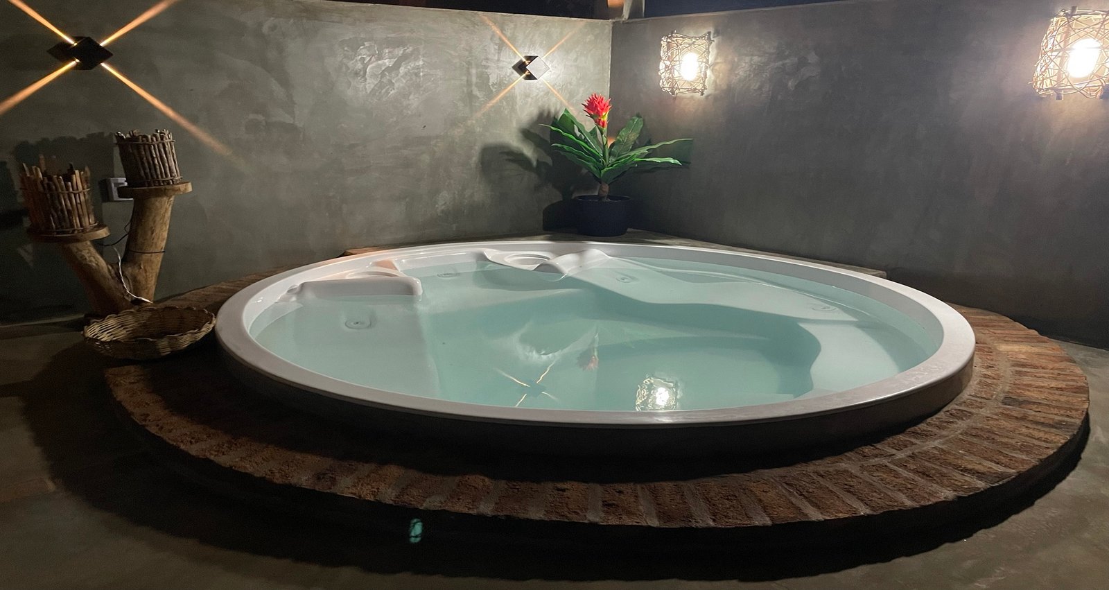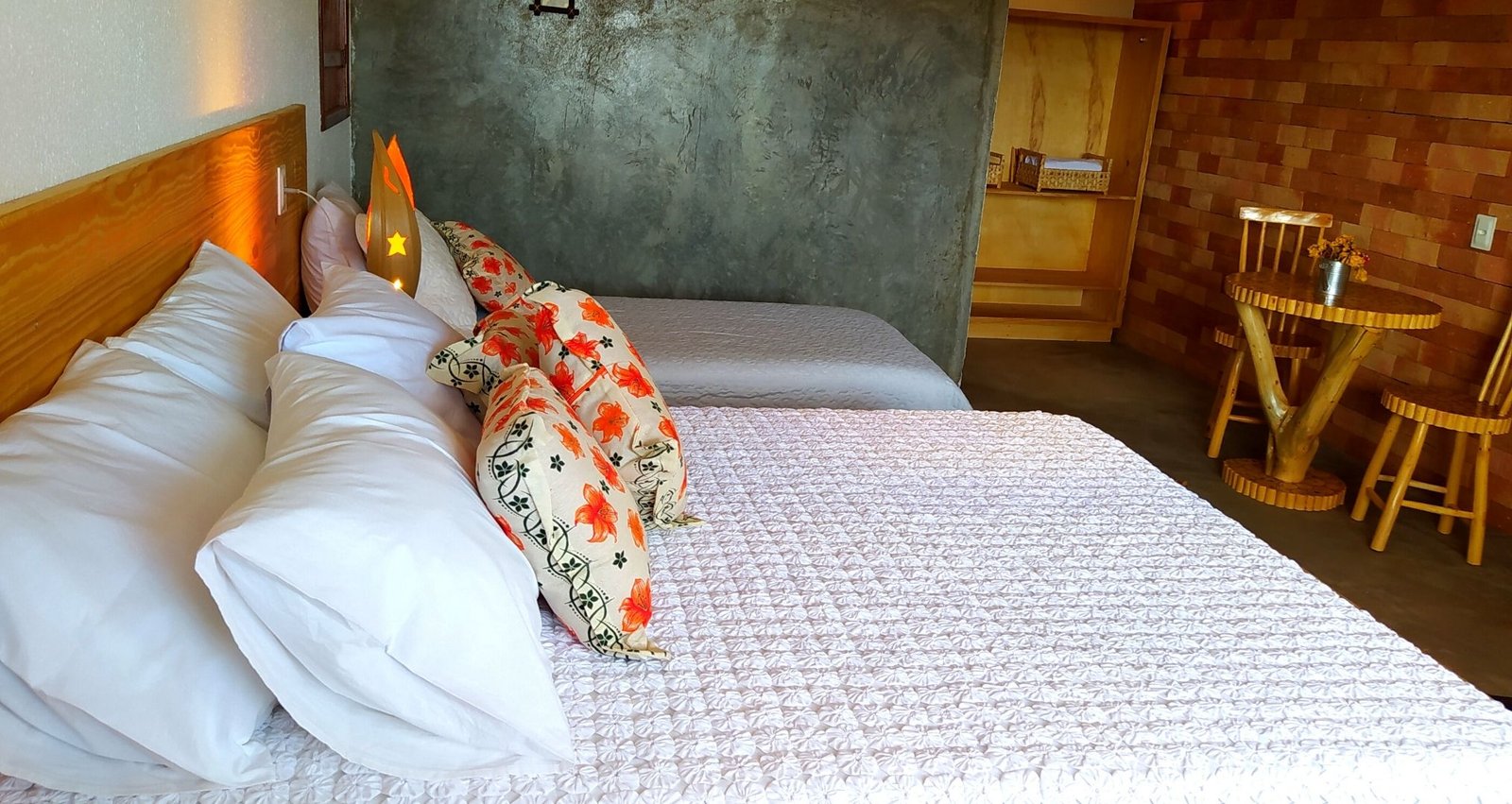 Depois, fizemos uma visita técnica pela área da Pousada para conhecer a infraestrutura do local, que dispõe de 05 Chalés, sendo 02 apartamentos por chalé, num total de 10 apartamentos (Chalés Cariri), 01 chalé diferenciado (Chalé Céu Encantado), com 2 apartamentos com mais privacidade, com 02 banheiras de hidromassagem na área externa e terraços privativos para cada apartamento, ideal para jantares românticos ou para degustação de um bom vinho, curtindo a lua e a brisa do Cariri paraibano. O hóspede também tem a opção de tomar o café da manhã servido no restaurante, tipo buffet ou pedir para ser servido no Chalé. Além disso, todos os chalés possuem banheiro, frigobar, guarda-roupa, mesinha com cadeiras e wi-fi gratuito.