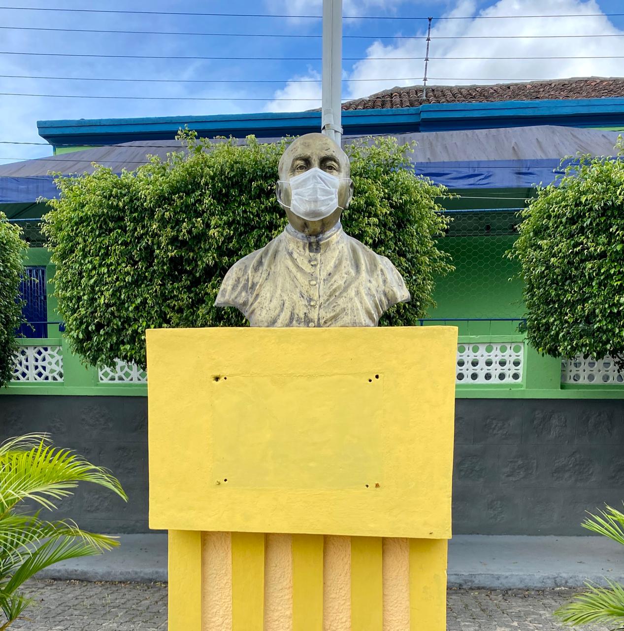 Colocar máscaras em estátuas foi a forma criativa que a prefeitura de Areia (PB), encontrou para conscientizar população sobre a importância do uso do equipamento de proteção ao Covid-19