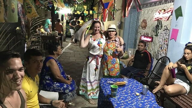 - Também é possível tomar um café da tarde na calçada das casas por volta das 17h, e se deliciar com as comidas típicas. As pessoas vão chegando, numa espécie de concentração, a espera dos forrozeiros começarem o forró na Praça em frente as casas;