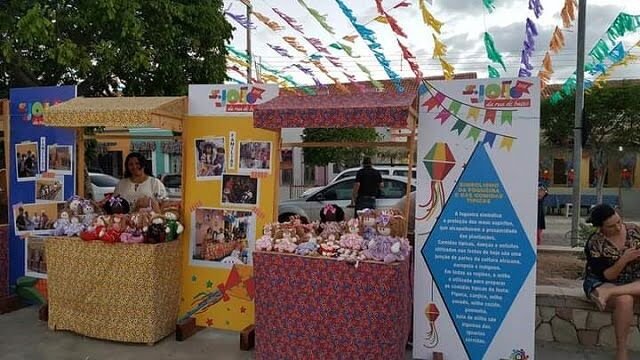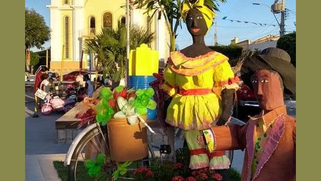 - A decoração da Praça da Festa Junina é realizada por um grupo de artesãos que trabalham com papietagem, transformando o que seria lixo, em uma bela decoração junina;