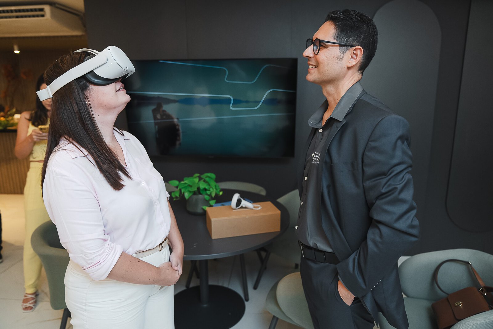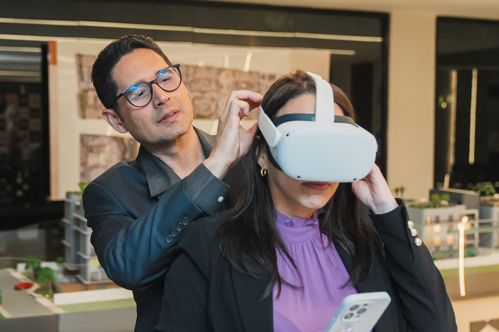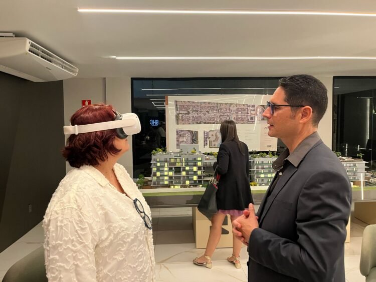 Após o talk, os jornalistas puderam fazer perguntas, conheceram de perto os detalhes da maquete do Artus Vivence e ainda explorar o empreendimento por meio de óculos de realidade virtual.