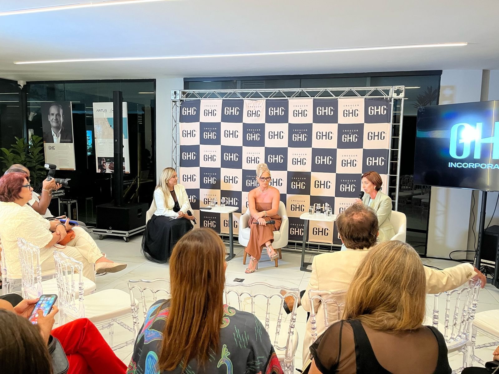 “O luxo mora no detalhe, mora nas experiências”. Assim a chief design officer da GHC Incorporações, Anna Karina Crispim, pontuou o conceito de luxo durante o talk que aconteceu na noite dessa terça-feira (18), na sede da GHC. O evento reuniu jornalistas que têm o mercado como pauta nas áreas de serviços, negócios, construção civil, imobiliário, turismo, entre outros segmentos. Além de Anna Karina Crispim, o talk contou com a participação de Camilla Coriolano, gerente de Marketing da empresa, e mediação da jornalista e diretora da Viváss Comunicação, Andréia Barros.